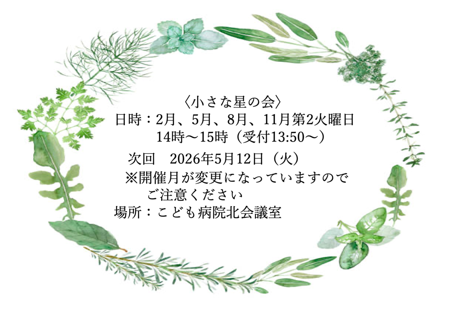 - 「小さな星の会」に関するお問い合わせは、上記アドレスか、長野県立こども病院0263-73-6700(代)にお電話いただき「小さな星の会担当者へ」とお伝えください。なお、その際に個別のご相談やご要望にはお答えいたしかねますので、あらかじめご了承くださいませ。